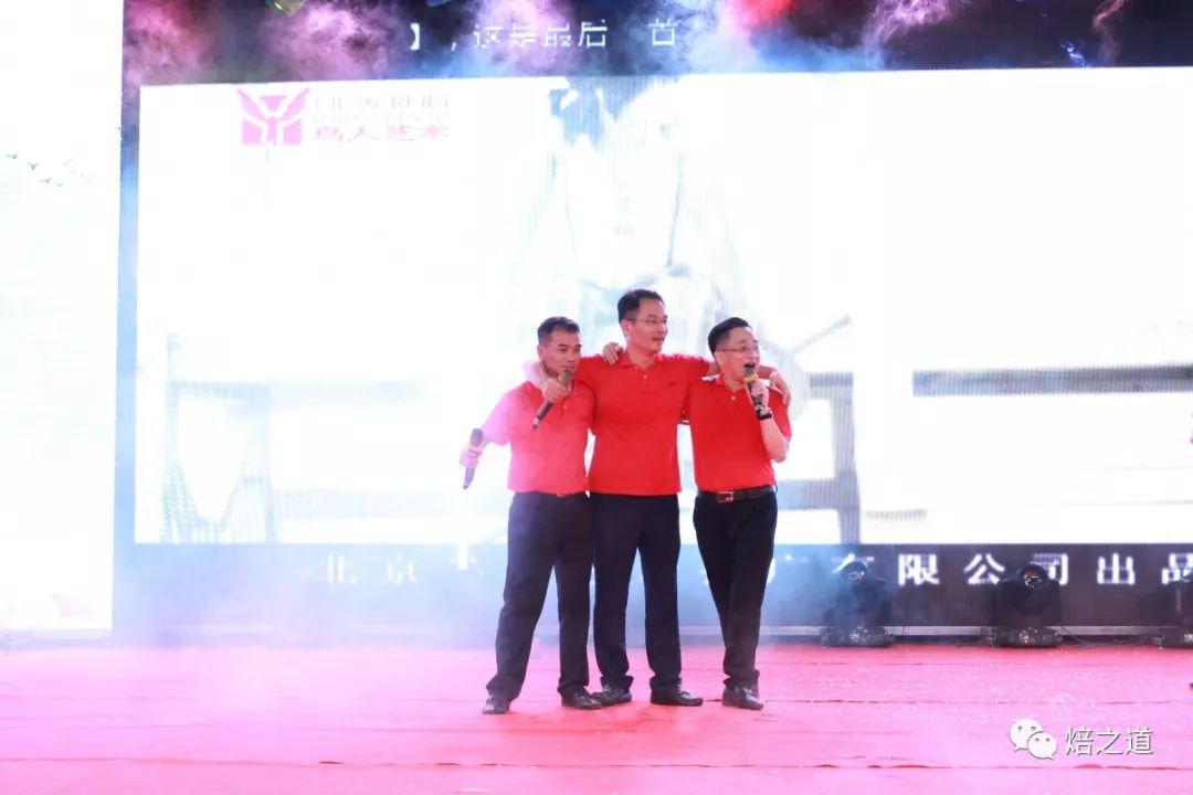 董事长薛从福、副董事长兼总经理卢灯荣和董事沈文辉上台合唱《闯码头》.